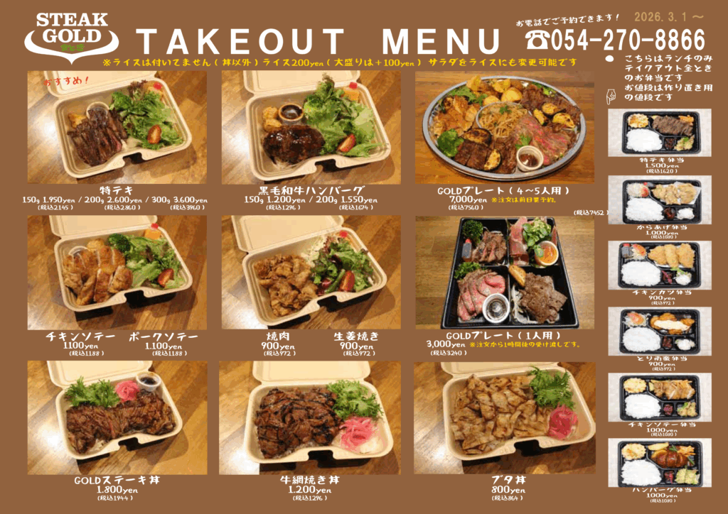 Steak Gold テイクアウトメニュー